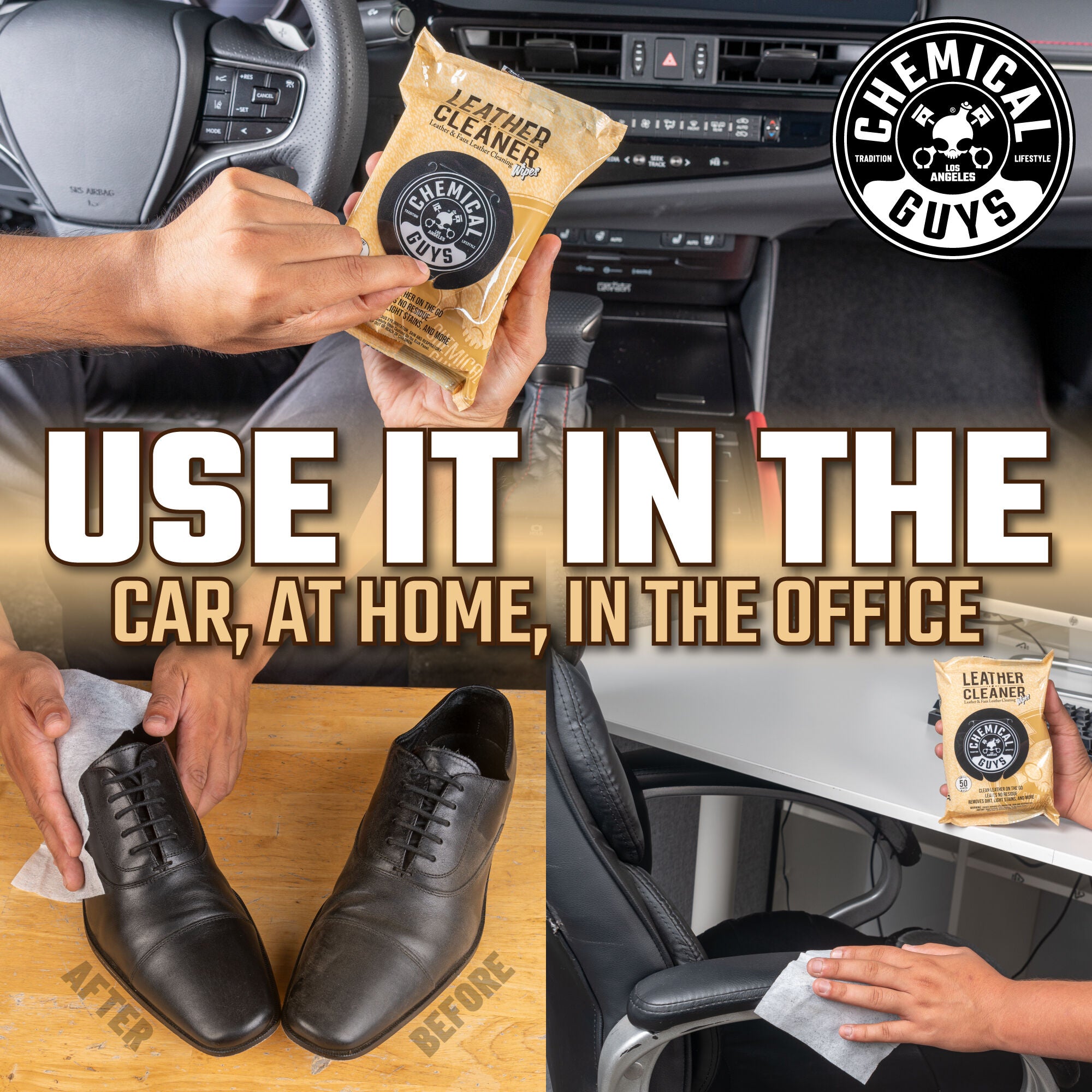 Leather Cleaner Wipes are easy-to-use wipes that quickly remove dirt. grease. body oils. and sweat from all types of leather. then maintain the like-new look and feel of your leather surfaces.