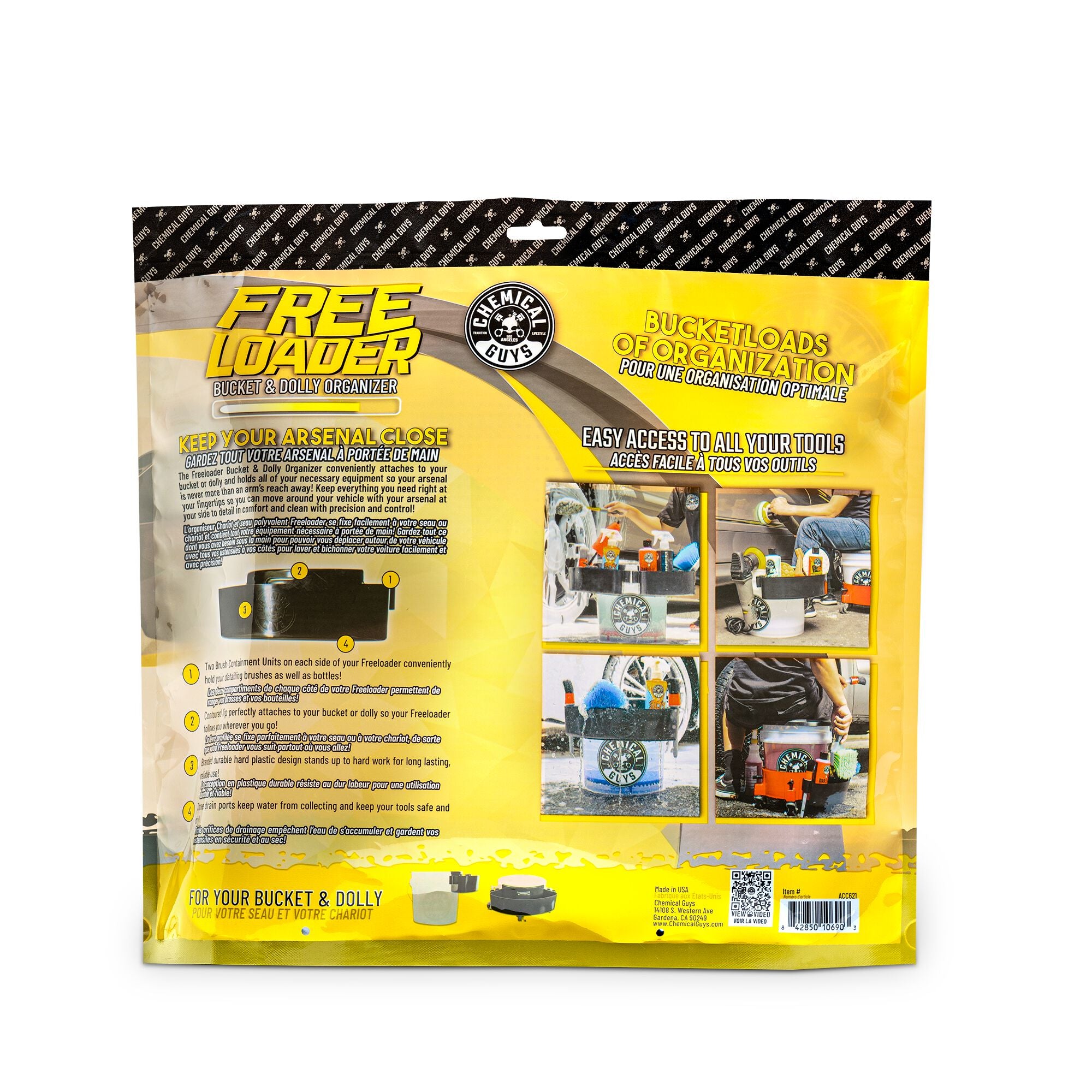 The Freeloader Bucket & Dolly Organizer is the easy way to store and access all your supplies while you detail! Your detailing arsenal is always within an arm’s reach with two brush containment units. Attaches to your heavy-duty bucket.